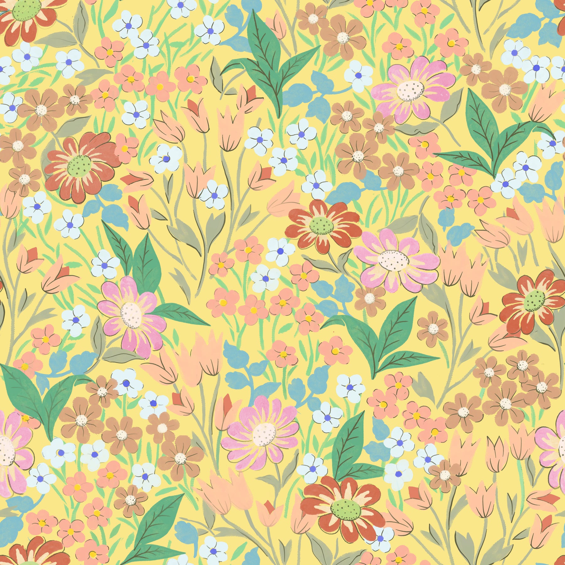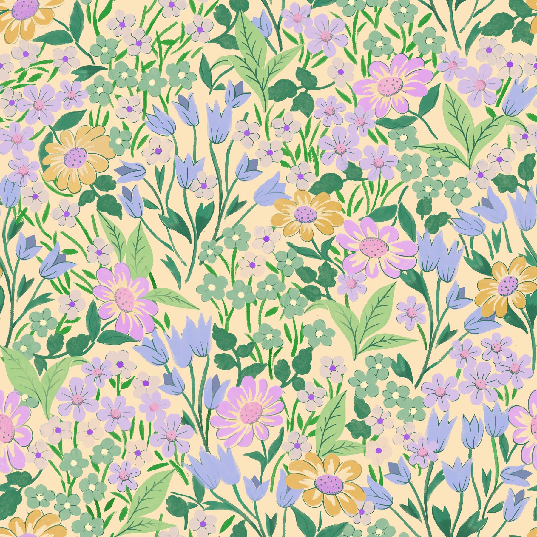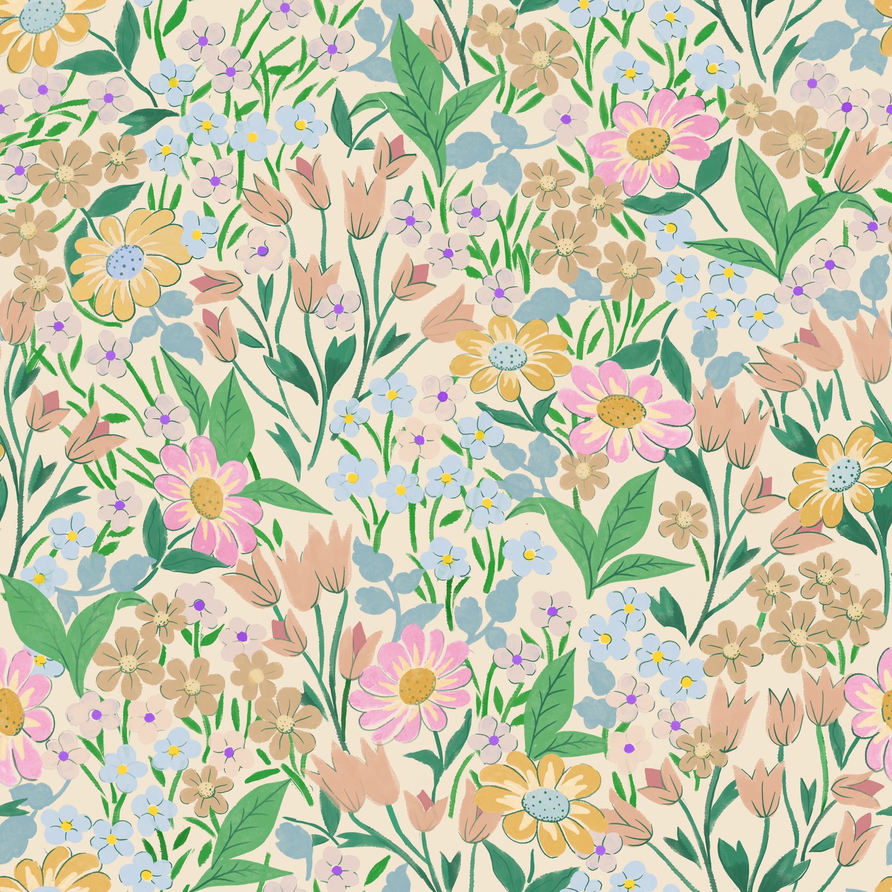 - Mønster: vildblomstermotiv med en blød, malerisk rytme