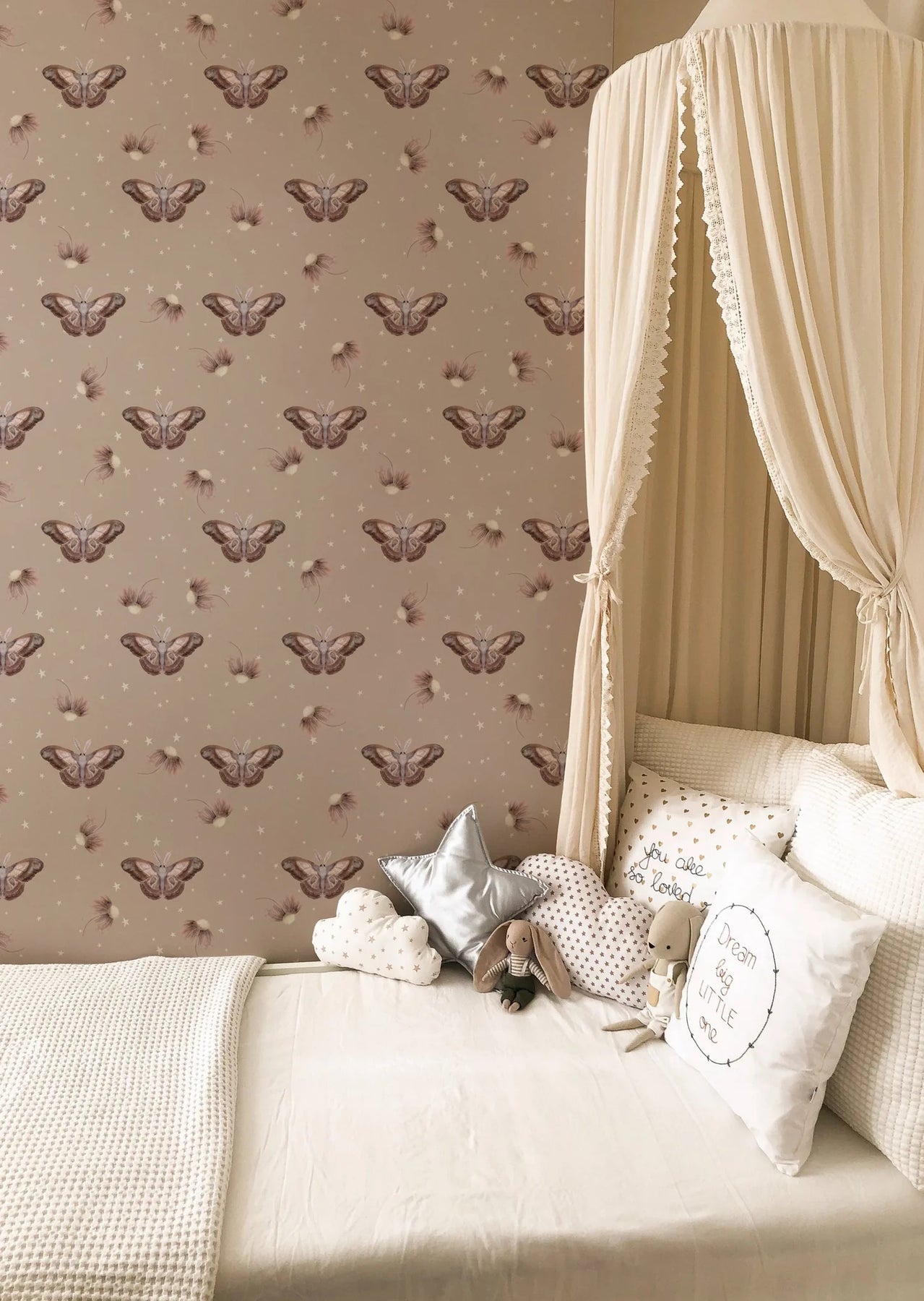 - Magiske stjerner og møl-motiv tænder fantasien og skaber rolige sengetidsøjeblikke.