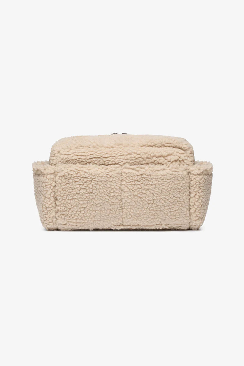 Keep every outing smooth and hands-free with this tactile teddy-fleece stroller organizer, offering quick-access storage for daily essentials and the option to switch into a compact cross-body micro changing bag—all with planet-minded recycled materials in the mix.