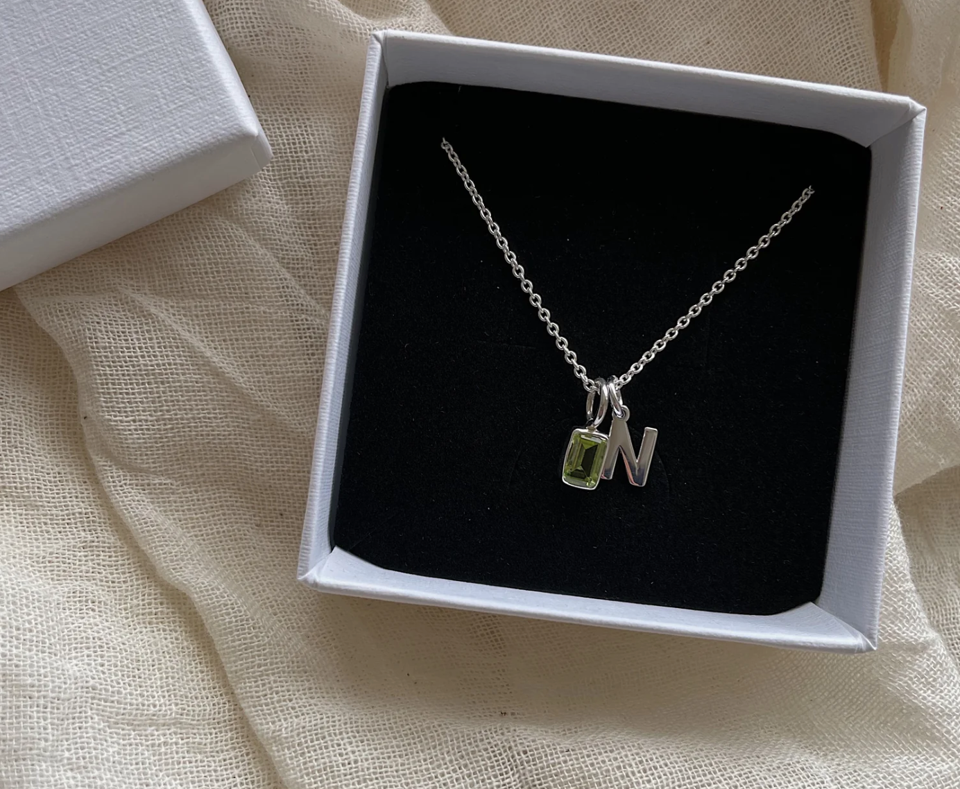 Portez votre histoire : pendentif en argent 925 serti de la pierre de naissance de votre choix, rehaussé de l'initiale (ou des initiales) souhaitée(s) - un collier‑souvenir à chérir ou à offrir.