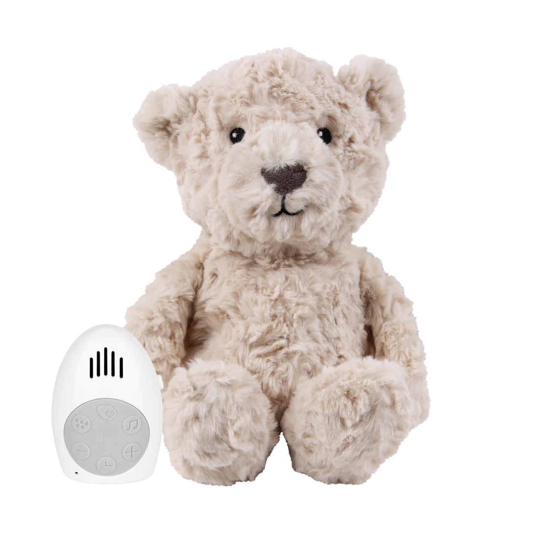 Troost je kleintje met deze zachte slaapknuffel van Flow Amsterdam. Kies voor rustgevende witte ruis of twee zachte melodieën. Stel de automatische uitschakeltimer in; als je baby huilt, start Lou Bear opnieuw om hem of haar te troosten en weer in slaap te wiegen.
