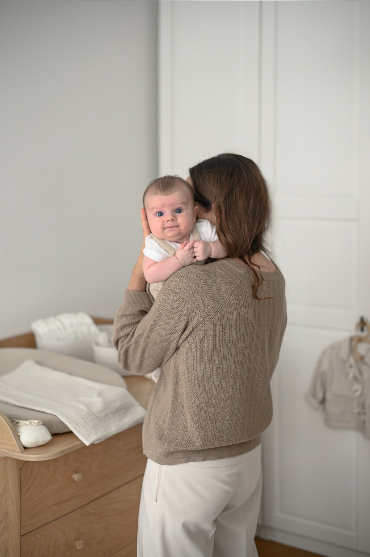 Opgericht in 2017 door Katrine Loug Jagd, moeder van drie, brengt We Are Bitte Deense ontwerptradities van functionaliteit en vakmanschap in het dagelijks gezinsleven. Hun babykamermeubels zijn gemaakt om generaties lang mee te gaan en combineren elegante vormen met praktische details — zoals deze massief eiken commode die meegroeit met je kind. Ontdek de volledige Nature-collectie babykamermeubels.