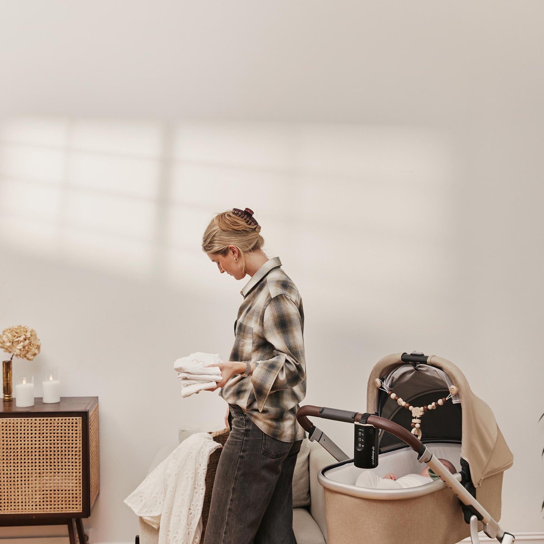 - Тихий, надійний мотор справляється з важчими та двійними візочками, забезпечуючи плавне й стабільне гойдання.